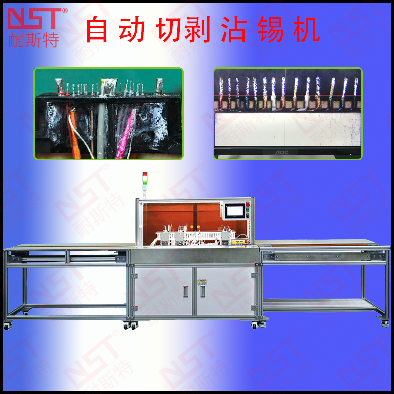 自動(dòng)沾錫機(jī)具有全自動(dòng)送料、半剝、沾助焊劑、沾錫、整形、比剪、夾具回流等功能