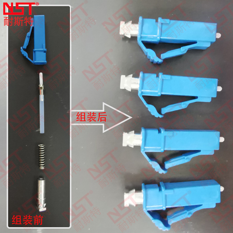 工藝流程:膠殼上料→膠殼確認(rèn)→組裝插芯鐵氟龍管→鐵氟龍管檢測→組裝彈簧→組裝鋁管→鋁管鉚壓→彈簧檢測→高度檢測→OK品卸料→NG品卸料